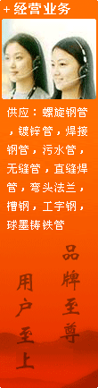 本公司主要生產經營:螺旋管,焊接鋼管,無縫管,鍍鋅鋼管,球墨鑄鐵管,直縫鋼管,角鐵,工字鋼,彎頭法蘭等。產品廣泛應用于市政工程,供水管道,污水排放,供熱管網,煤氣管網,煤井礦山,通風管道,建筑工程,鋼結構,打樁,橋梁,碼頭等領域。同時本公司配有防腐加工廠,專業對鋼管進行內外壁防腐加工,鋼管外壁主要有三油兩布,五油三布,環氧煤瀝青及環氧樹脂漆以及各種高分子涂料。鋼管內壁主要有無毒飲用水涂料IPN8710-2B,水泥砂漿及各種環氧涂料。螺旋鋼管材質為:Q235 也可按客戶需要自選材質。螺旋鋼管的標準依據為:SY/T5037標準生產和檢驗。定尺長度通常為:12000mm,也可以生產不同長度的管材。